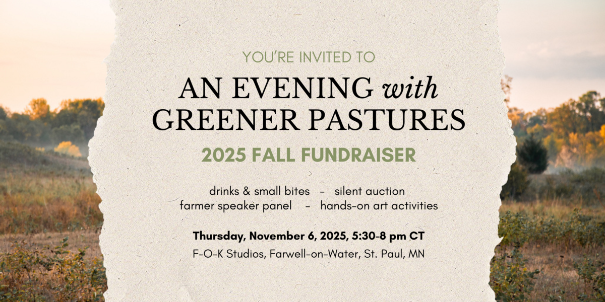 Don't miss this fun, celebratory evening of food, community, farms, and raising support for Greener Pastures! Space is limited- reserve your tickets today.